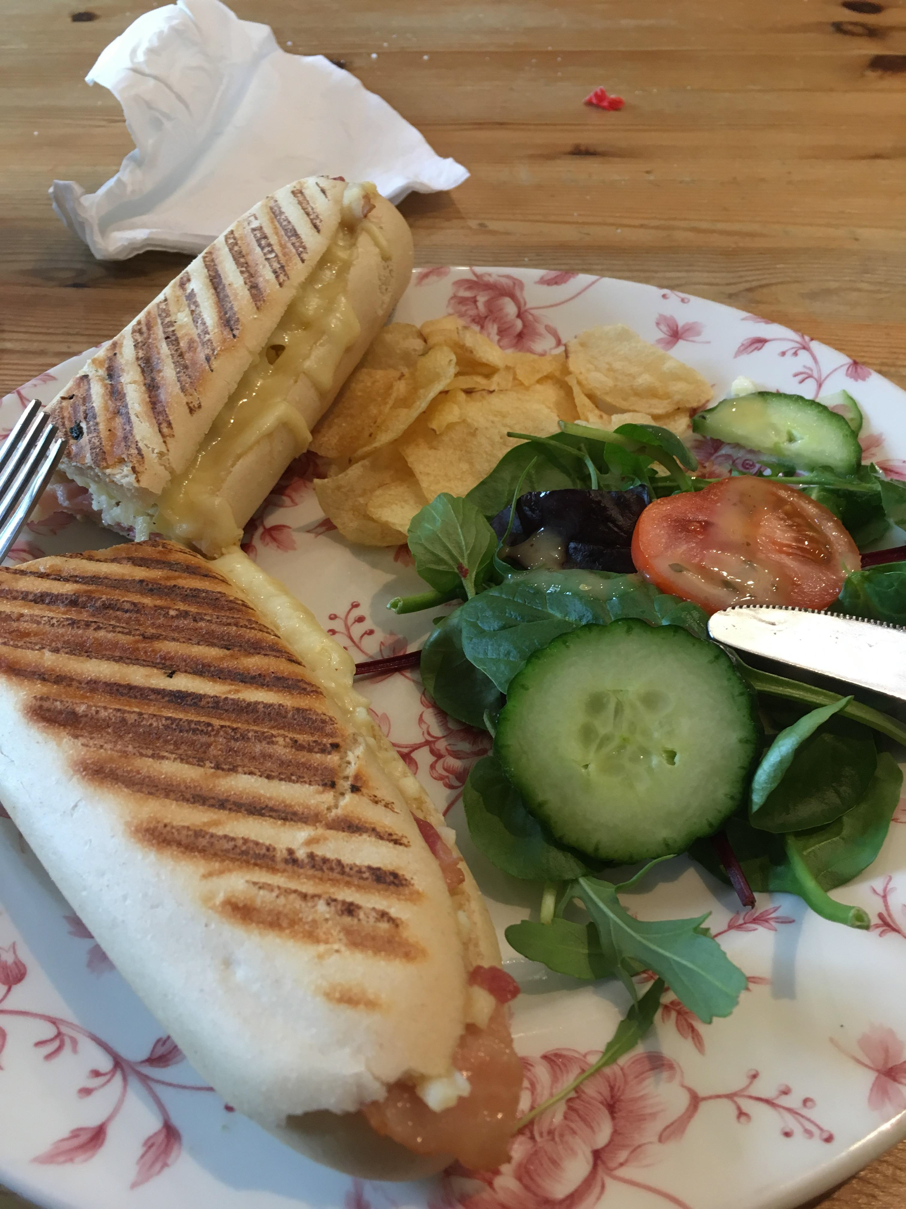 By now, I was cold and hungry, so I warmed up in a nearby cafe with some coffee and a panini (with 'chips'; this amused me no end, but it was actually just what I needed to warm my freezing self) and then took the train back to Cardiff.